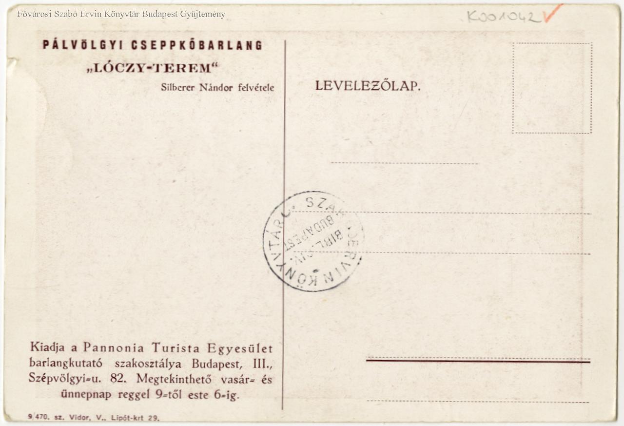 A képeslapon feltüntetve a barlang nyitva tartási ideje