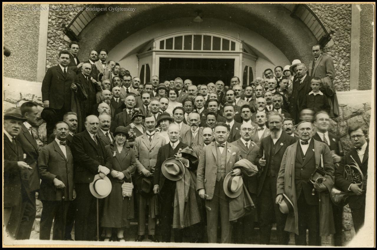 [A Német Kereskedők Énekegyesületének tagjai a Budapesti Kereskedők Menháza előtt]