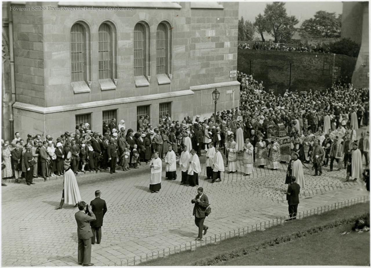 katolikus egyház, keresztény ünnep, nemzeti ünnep, augusztus 20., körmenet, ereklye, kegytárgy, katolikus pap, testőr, Horthy-korszak, 1930-as évek