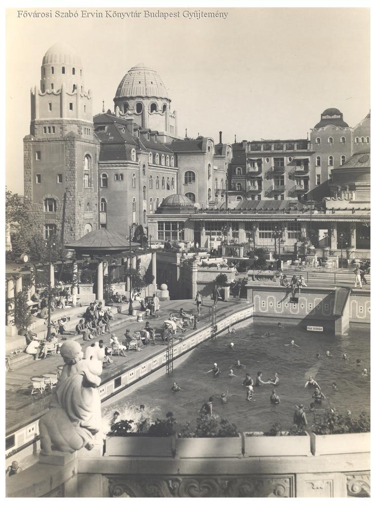 épületkép, gyógyfürdő, úszómedence, fürdőzés, napozás, ülőbútor, szobor, udvar (telekrész)