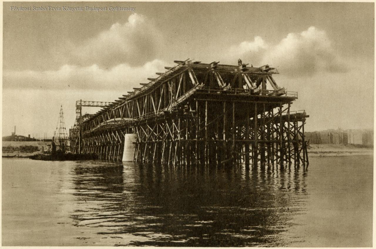 közúti híd, hídépítés, acélszerkezet, állvány, látkép, 1935