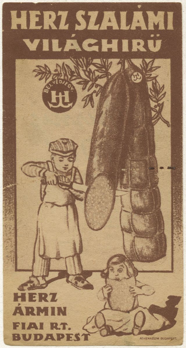 szalámi, felvágott, hentes, fiú, lány, gyermek, minőség, szalonna, étkezés, védjegy, evés, táplálkozás, reklámnyomtatvány, kisnyomtatvány, aprónyomtatvány, számolócédula