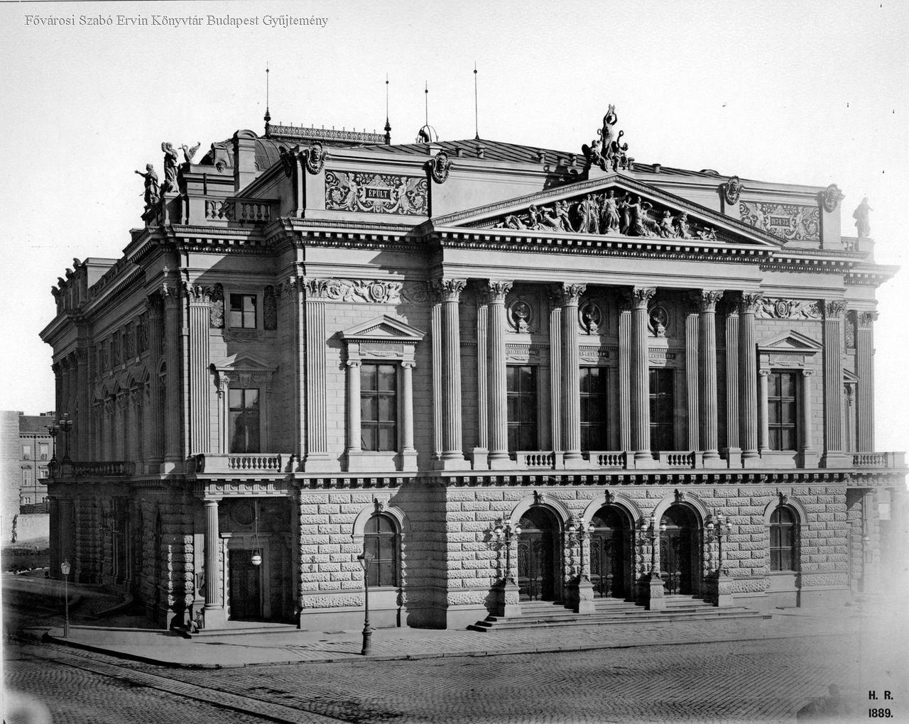 színház, épületdísz, vasúti pálya, villamos közlekedés, lámpa, épületkép, külső felvétel, 1889