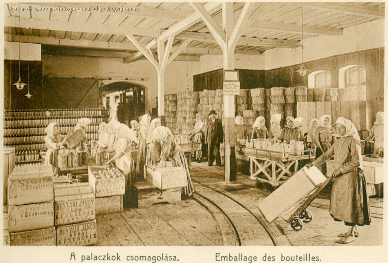 élelmiszeripar, ásványvíz, palack, csomagolás, női munka, belső felvétel, 1900-1909