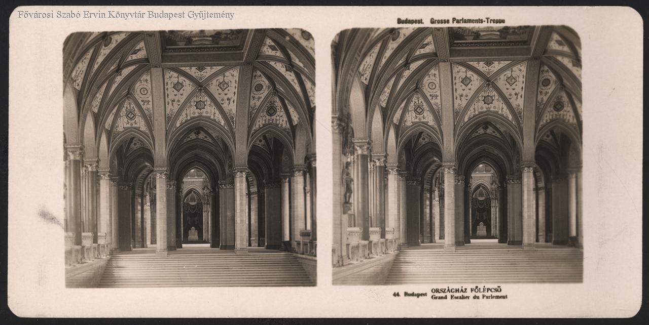 44. Budapest, Országház főlépcső Budapest, grosse Parlament-Treppe = Budapest, Grand escalier du Parlament /