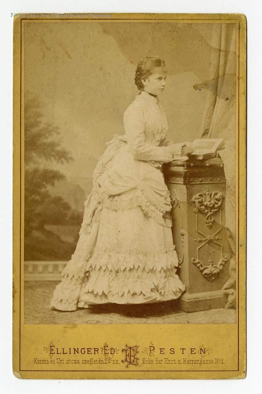 Datálás: Ellinger Ede 1872-től használta az udvari fényképész címet, e kép hátlapján azonban még e megjelölés nem szerepel. Ugyanakkor egy másik Ellinger-képen, ami felismerhetően ugyanezen alkalommal készült, a vőlegényével, Lipót bajor királyi főherceggel látható, akivel 1872-ben jegyezték el egymást. Erről a fényképeszkedésről, amit az egész Korona utcát elfoglaló közönség kísért figyelemmel, a korabeli sajtó beszámolt. (Pl.: Budapesti Közlöny 6. évf. 87. sz. (1872. ápr. 15.) p. 694