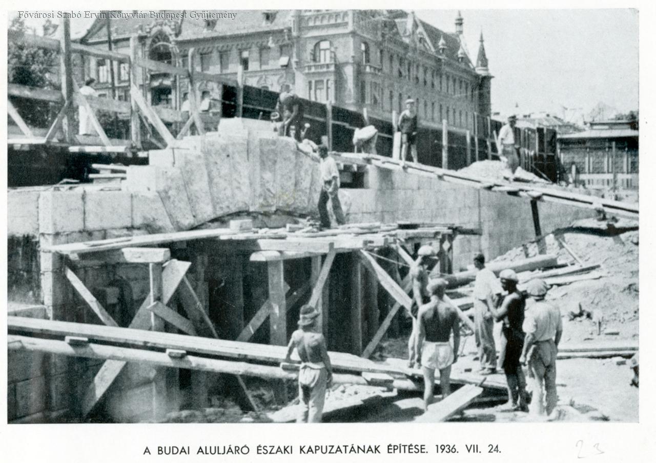 [A Margit híd átépítése, 1935-1937] A budai aluljáró északi kapuzatának építése : 1936. VII. 24.