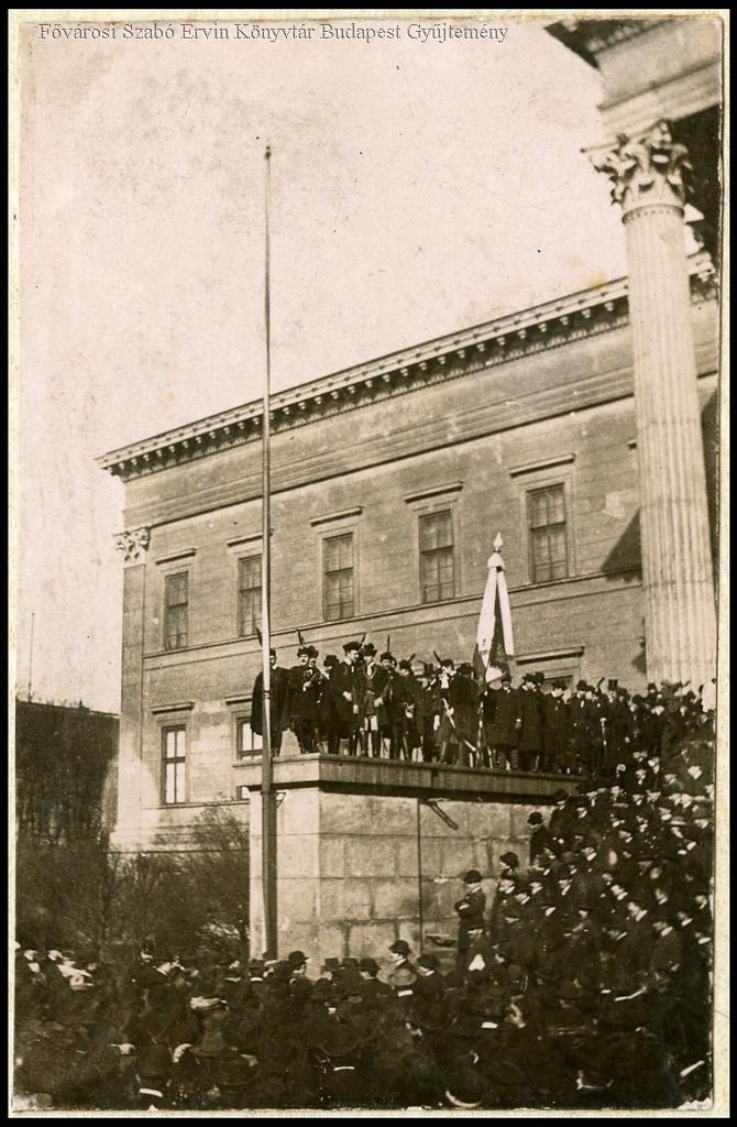 [Március 15-i ünnepség a Nemzeti Múzeum lépcsőin]