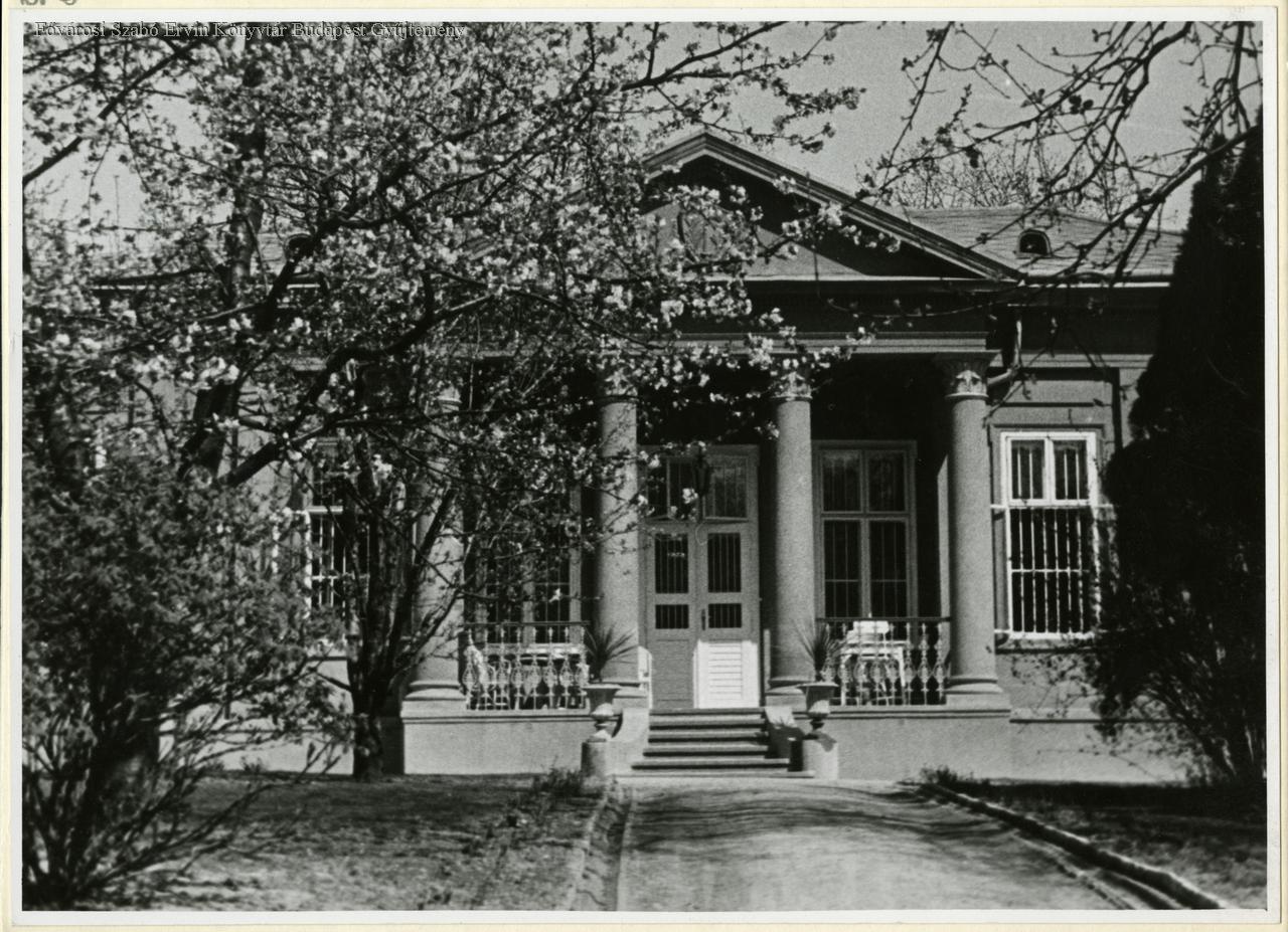 családi ház, épületfotó, homlokzat, bejárat, lépcső, fa, bokor, sétány, terasz, 1943