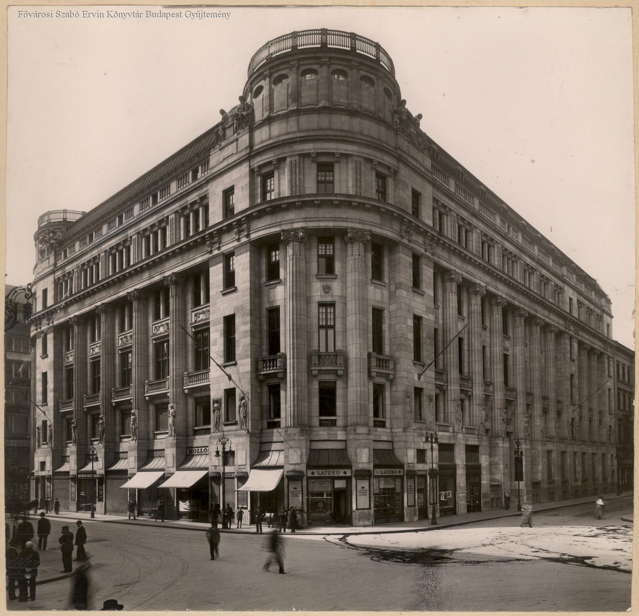 Váci utca 1-3. Türr István utca 8-10. 1789-ig a telken állt a városfal, a Váci kapu, illetve a kapu mellett a falhoz csatlakozó őrház. A várfal bontása után a mai Deák Ferenc utca sarkára Feszl György ácsmester építtetett házat. Ennek földszintjén működött 1819-től Calderoni István kereskedése. 1911 és 1915 között épült a ma is álló nagy sarokház