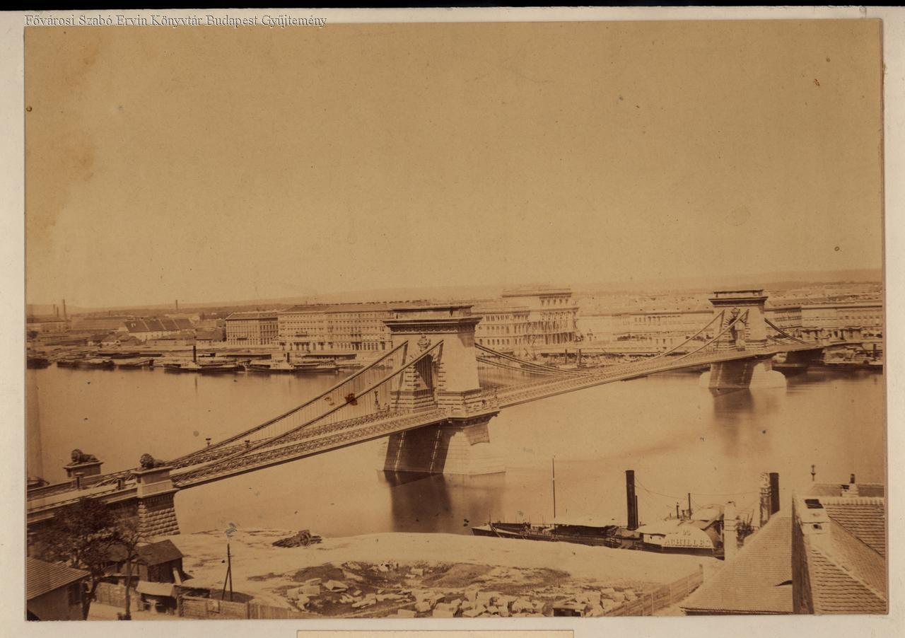 [Lánchíd és a pesti Duna-part látképe az épülő Akadémiával]