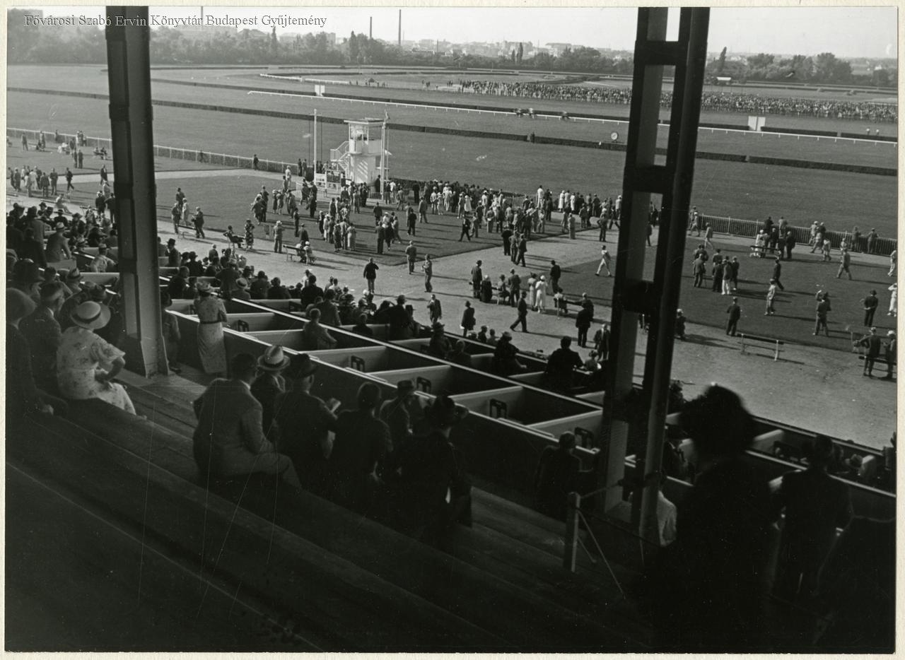 lóverseny, lovaglás, sportlétesítmény, közönség, sajtófotó, 1930 körül