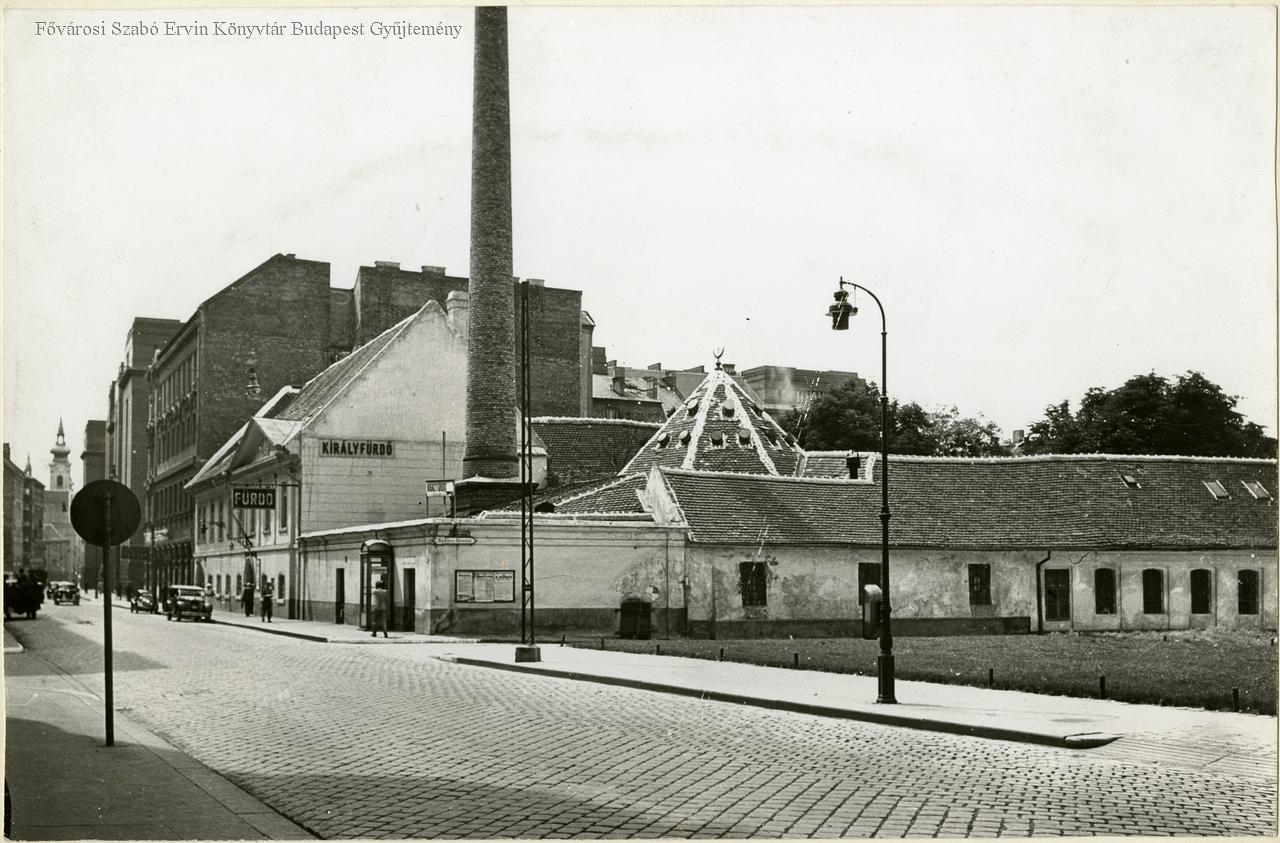 [Fő utcai részlet a Király fürdővel]