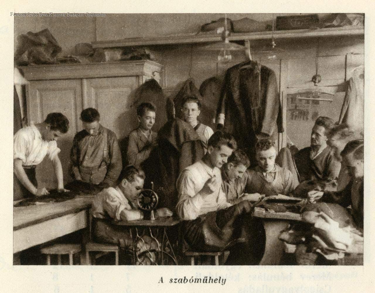 [Képek a Nyomorék Gyermekek Országos Otthonából: szabóműhely, varroda]