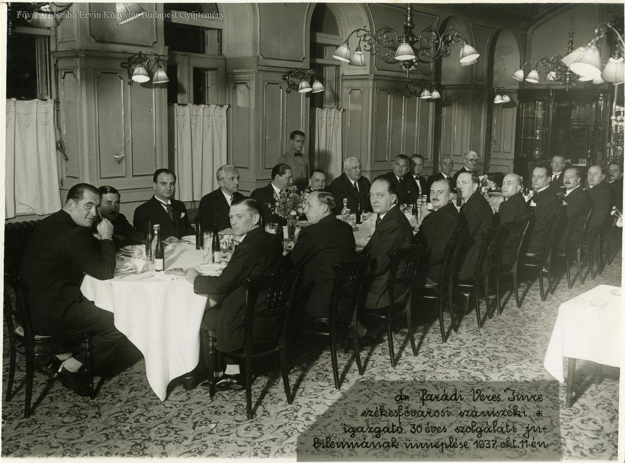 Dr. farádi Veres Imre székesfővárosi számszéki igazgató 30 éves jubileumának ünneplése 1937. okt. 11-én