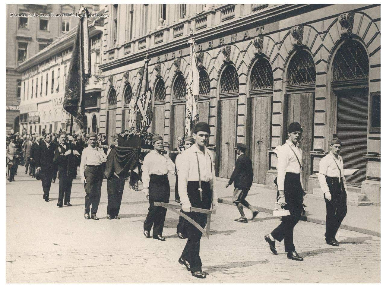 A "pesti szabócéh" felvonulása.