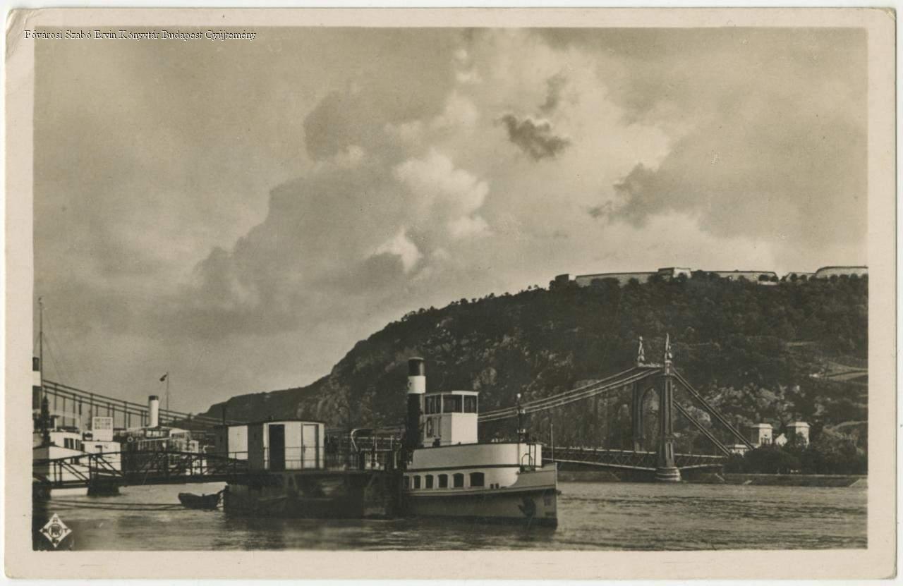 kikötő, hajó, közúti híd, képes levelezőlap, 1930-as évek
