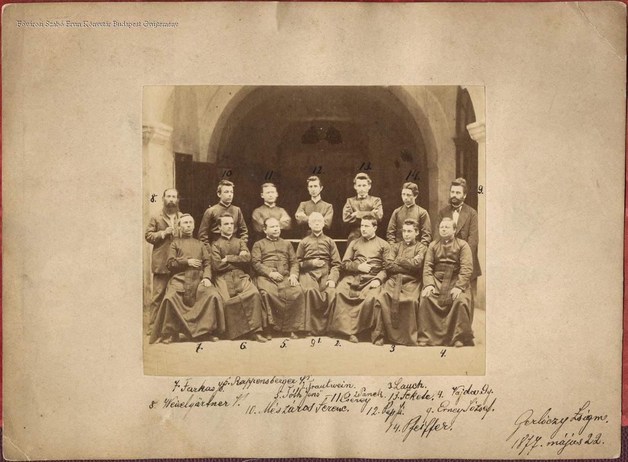 piaristák, katolikus egyház, egyházi iskola, általános iskola, gimnázium, kolostor, tanár, katolikus pap, egyházi ruházat, csoportkép, 1877