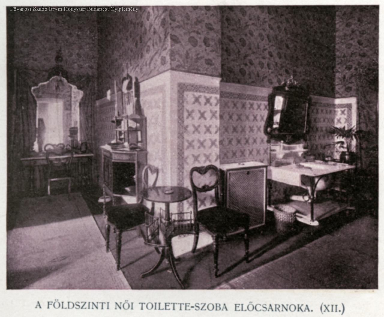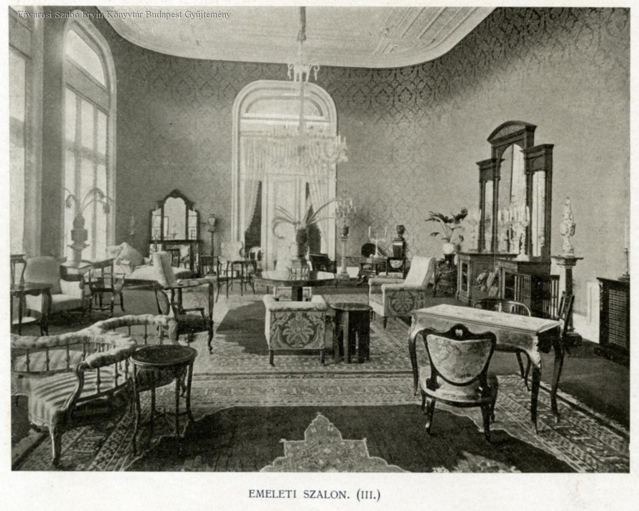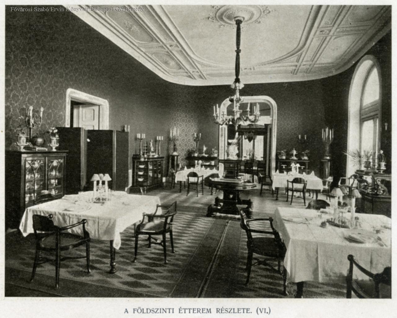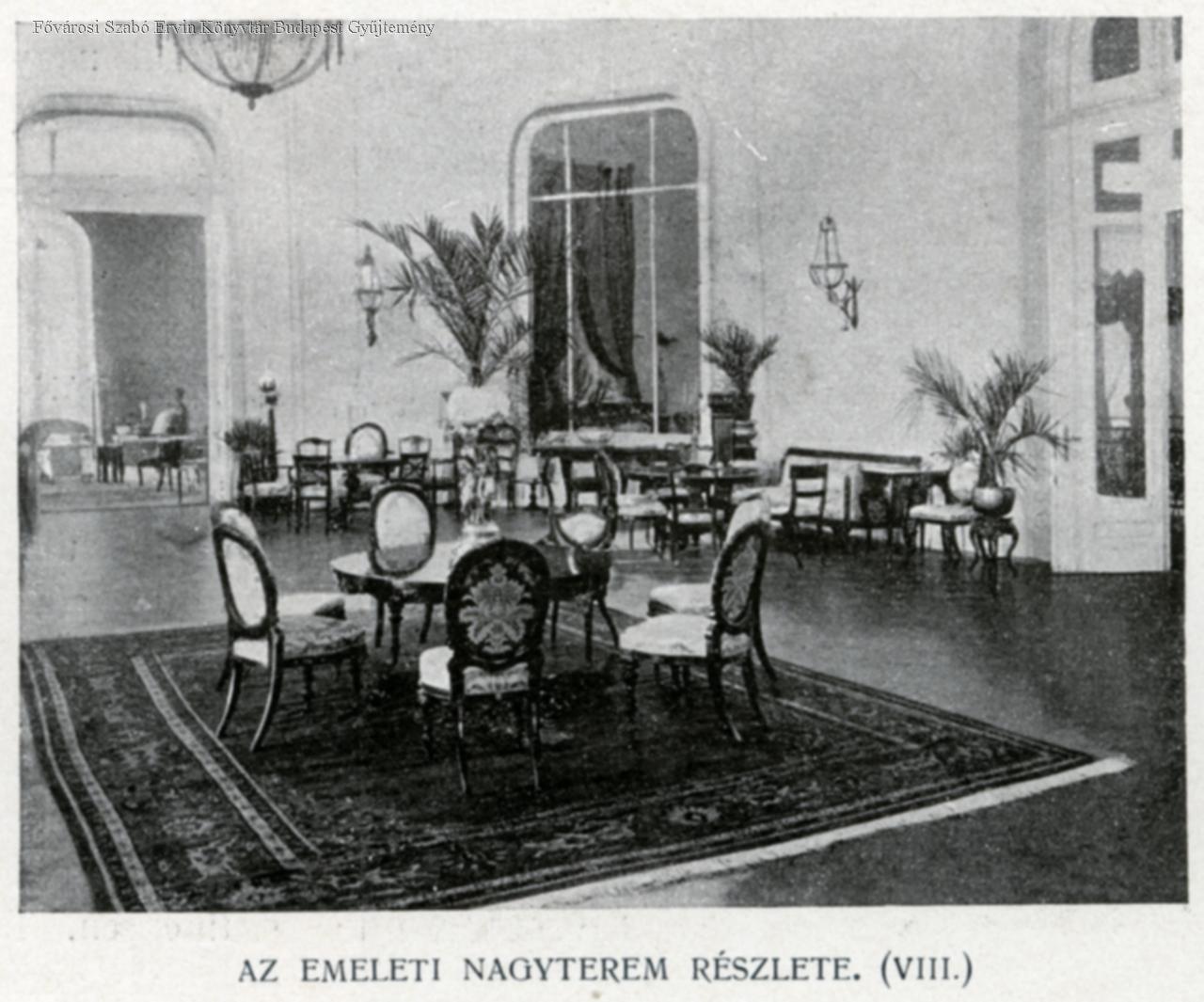 Emeleti szalon, földszinti társalgó, előcsarnok, étterem, földszinti játékterem, emeleti nagyterem, női toilette előcsarnoka, földszinti játékterem