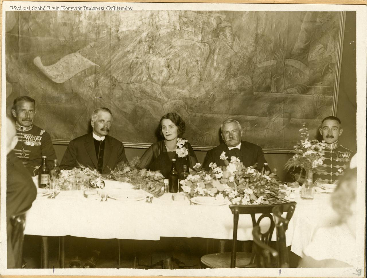 [Mühlbeck Károly és Nemes Mihály képzőművészek jubiláris bankettje az Otthon Körben, 1933] az ünnepeltek között Nemes Mihály lánya ül