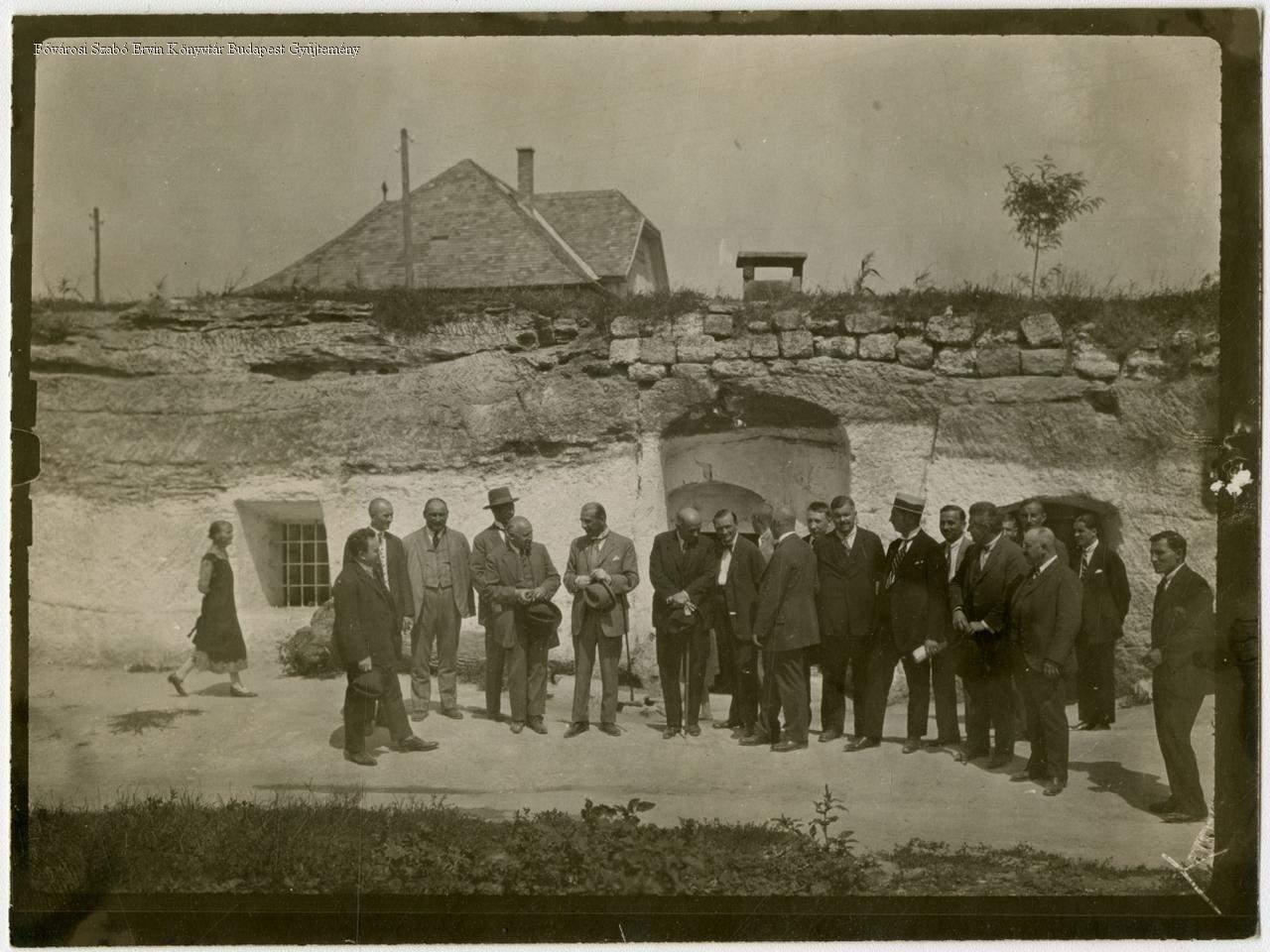 [Városházi hivatalnokok szemléje Budafokon a barlanglakásoknál]