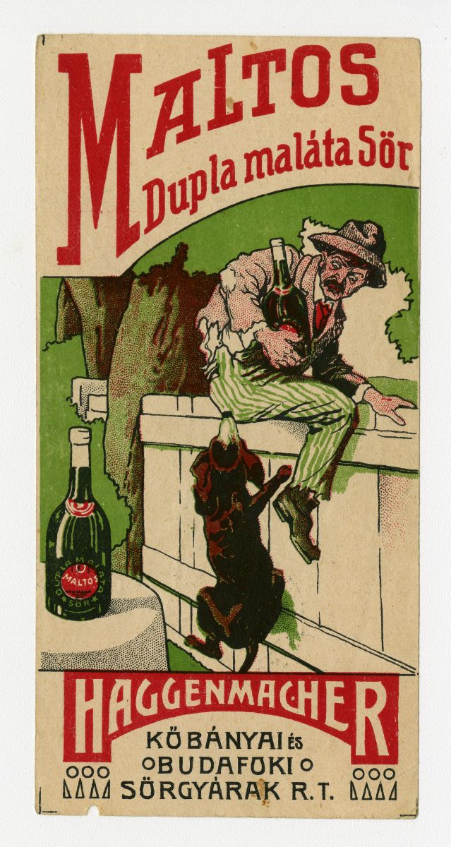sör, maláta, férfi, kutya, üvegpalack, kerítés, sörgyártás, söripar, lopás, reklámnyomtatvány, kisnyomtatvány, aprónyomtatvány, számolócédula