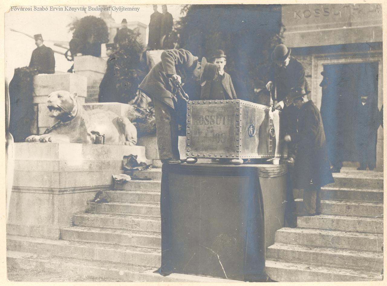 [Kossuth Lajos mauzóleumának avatása, maradványainak áthelyezése, a fémkoporsó leolmozása]
