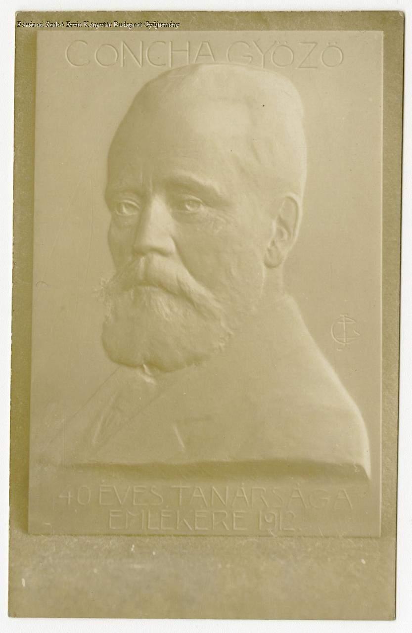 [Concha Győző 40. tanári évfordulójának tiszteletére készült portré emlékplakett, Zsákodi Csiszér János alkotása]