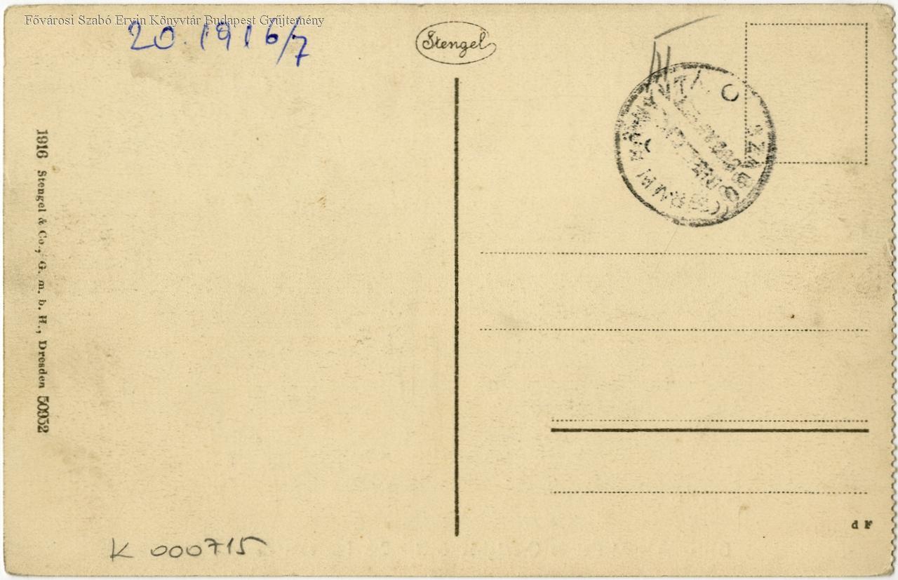 képes levelezőlap, lovasszobor, politikus, park, látkép, 1916