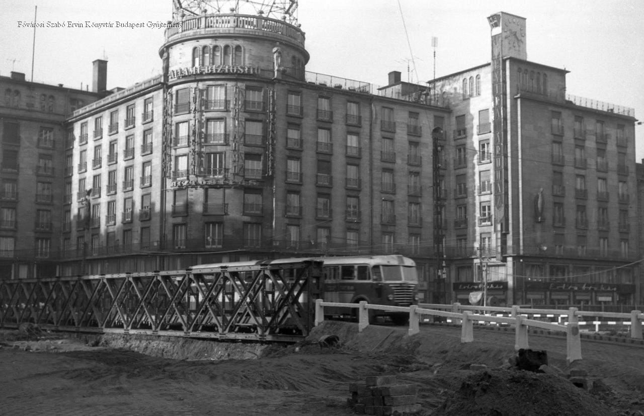 külső felvétel, épületkép, utcakép, aluljáró, építés, mozgatható híd, autóbusz, 1960-as évek