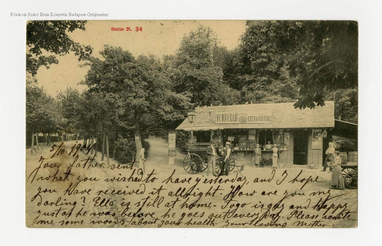 képes levelezőlap, külső felvétel, étterem, ember, szekér, 1890-es évek, 1900-as évek