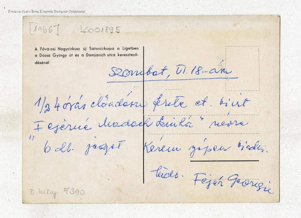 cirkusz, sátor, bejárat, képes levelezőlap, 1966