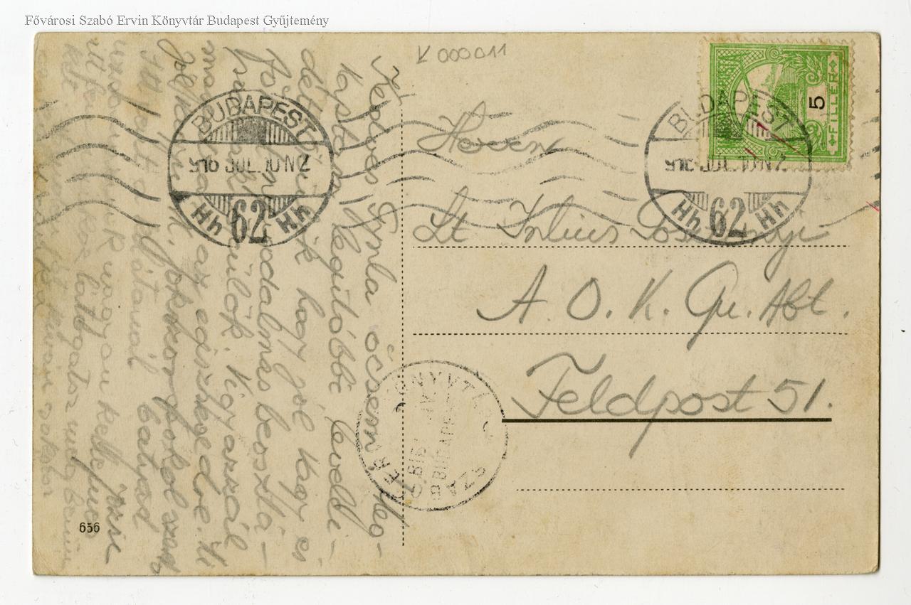 Futott: 1916 v. 1918, Budapest. Tábori postacímre küldték.