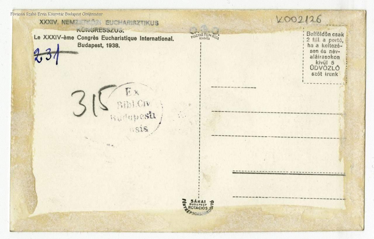 XXXIV. Nemzetközi Eucharisztikus Kongresszus le XXXIV-éme Congrés Eucharistique International : Budapest, 1938