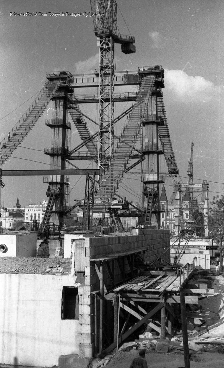külső felvétel, hídépítés, daru, állvány, 1960-as évek