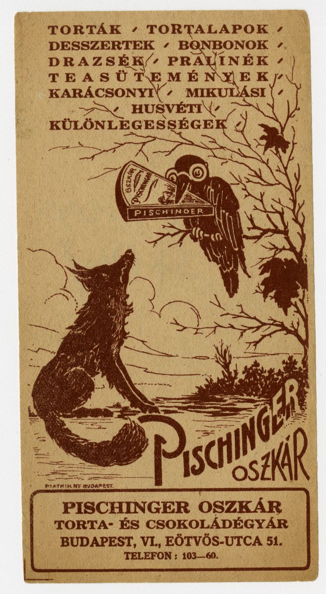 torta, tortalap, desszert, bonbon, drazsé, praliné, teasütemény, karácsony, Mikulás, húsvét, édesipari termék, cukrász, cukrászda, holló, róka, sajt, mese, reklámnyomtatvány, kisnyomtatvány, aprónyomtatvány, számolócédula