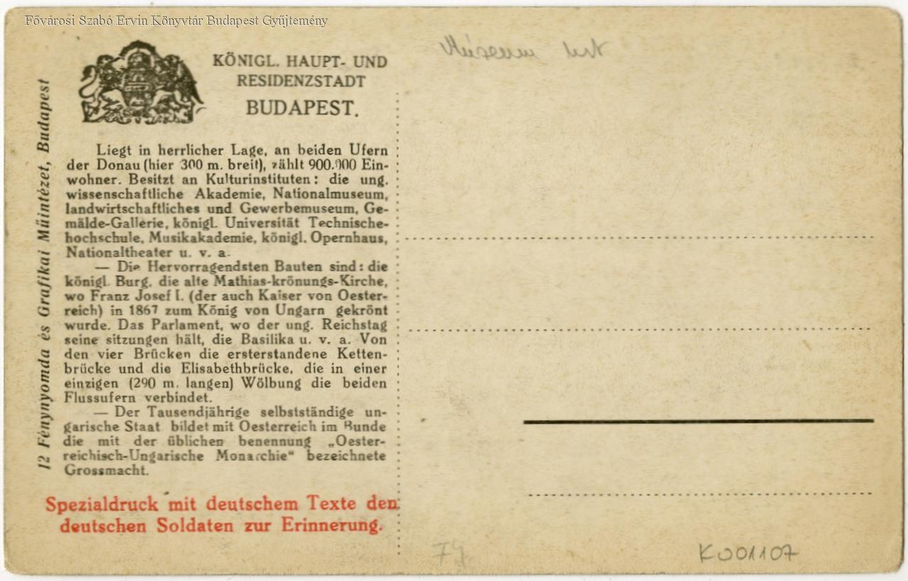 Budapest nevezetességeiről és nemzeti státuszáról szóló német nyelvű információs szöveggel a szövetséges német katonák számára