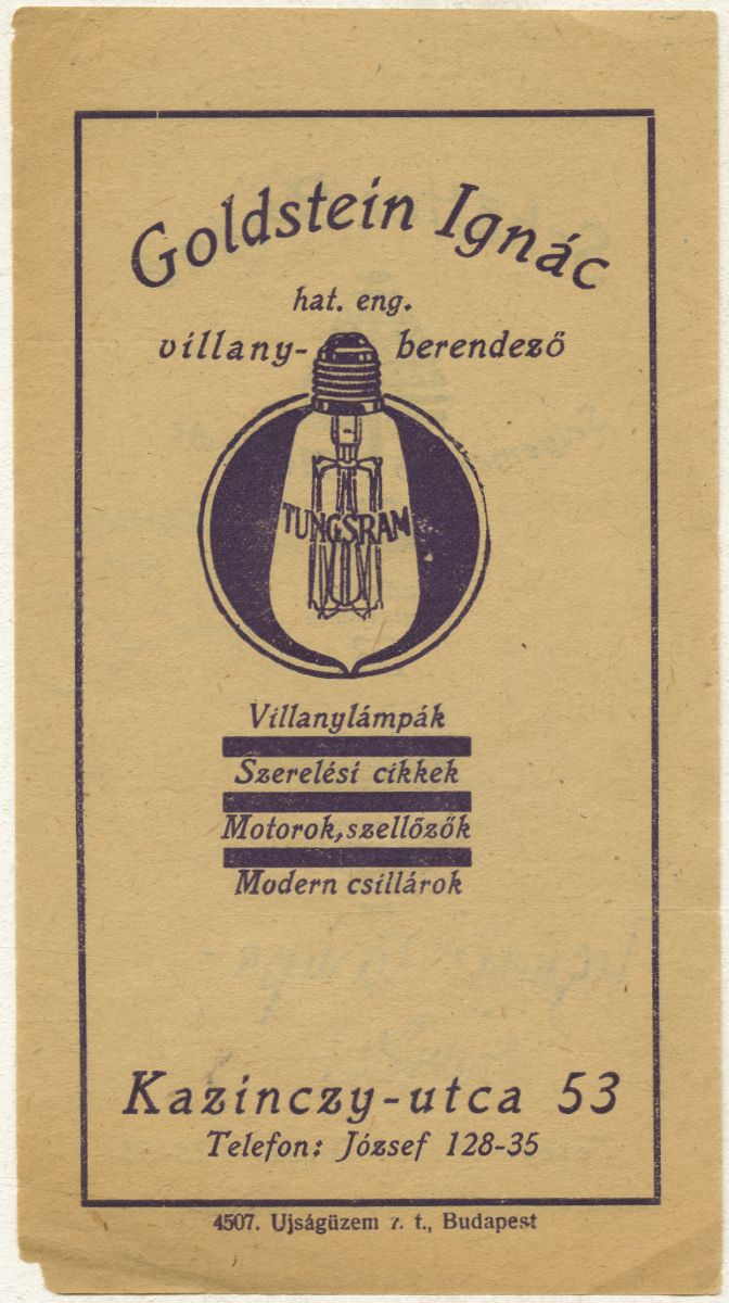 Goldstein Ignác hat. eng. villany berendező
