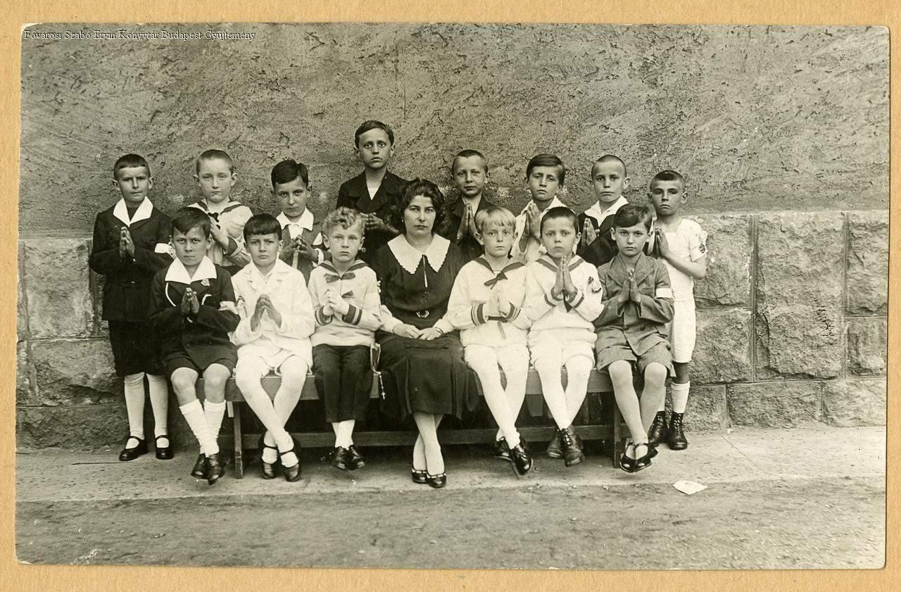 tanítónő, pedagógus, nő, tanuló, fiú, gyermek, csoportkép, 1920-as évek