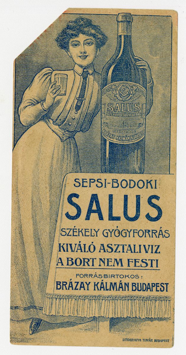 nő, pohár, üveg, címke, védjegy, gyógyforrás, gyógyhatás, reklámnyomtatvány, kisnyomtatvány, aprónyomtatvány, számolócédula