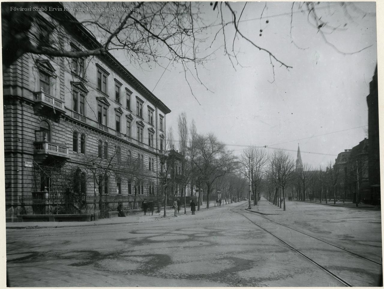 bérház, villamos, vasúti pálya, családi ház, ember, locsolás, utcakép, 1910-es évek