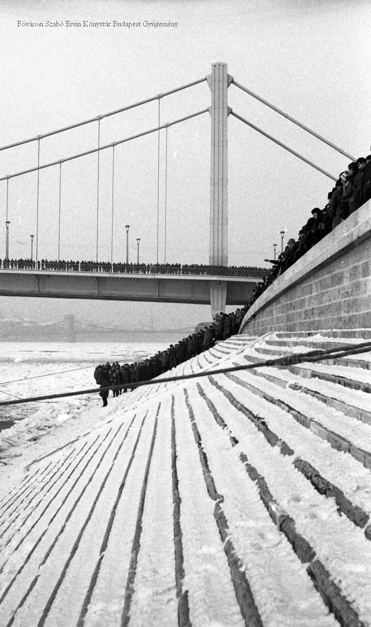 1967. január 12-én Schirilla György, a Vasas sportolója tizedik alkalommal ússza át a jeges Dunát. Az Erzsébet híd pesti hídfőjétől a Szabadság hídig úszott