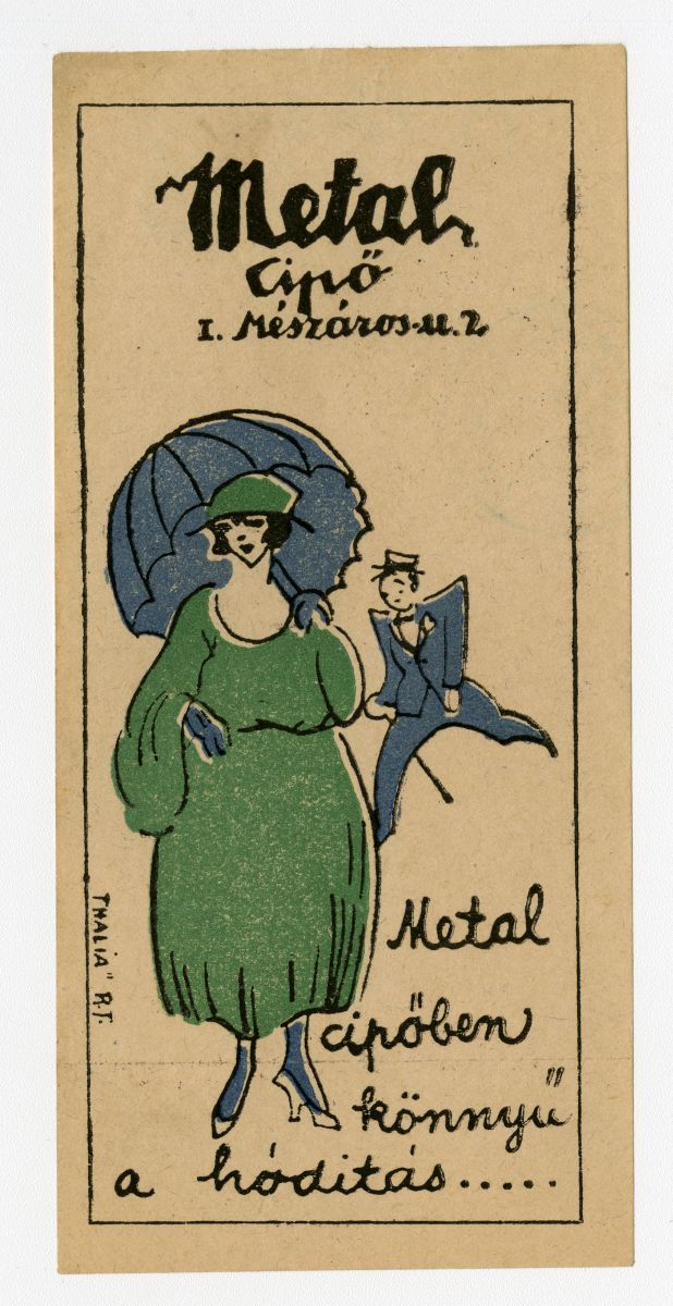 női cipő, cipész, nő, férfi, üzlet, udvarlási szokás, napernyő, reklámnyomtatvány, kisnyomtatvány, aprónyomtatvány, számolócédula
