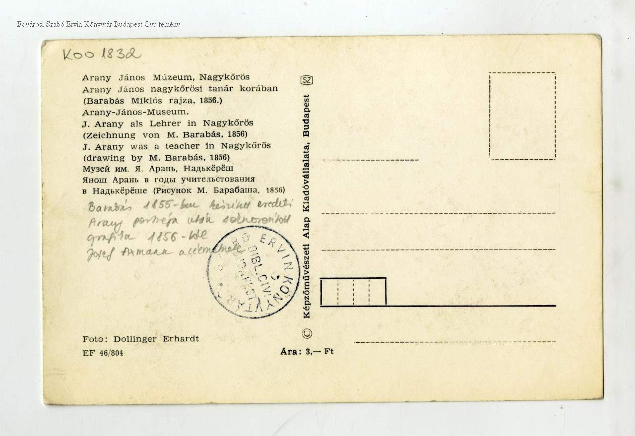 Arany János Arany János Múzeum, Nagykőrös : Arany János nagykőrösi tanár korában (Barabás Miklós rajza, 1856) : Arany-János-Museum : J. Arany als Lehrer in Nagykőrös (Zeichnung von M. Barabás, 1856) : J. Arany was a teacher in Nagykőrös (drawing by M. Barabás, 1856) : Muzej im. Â. Aran', Nad'kërëš : Ânoš Aran' v gody učitel'stovaniâ v Nad'kërëše (risunok M. Barabaša, 1856) /