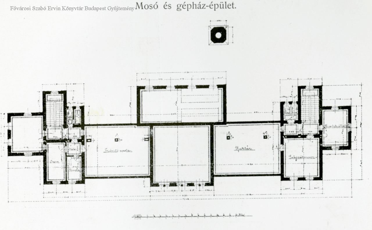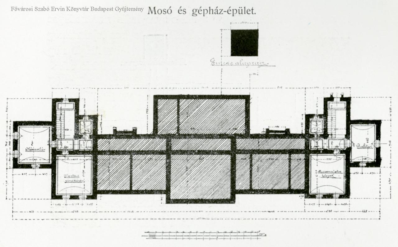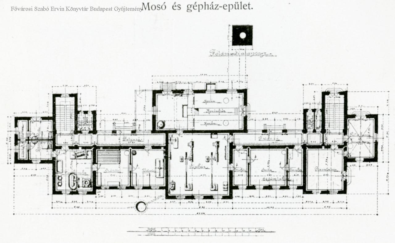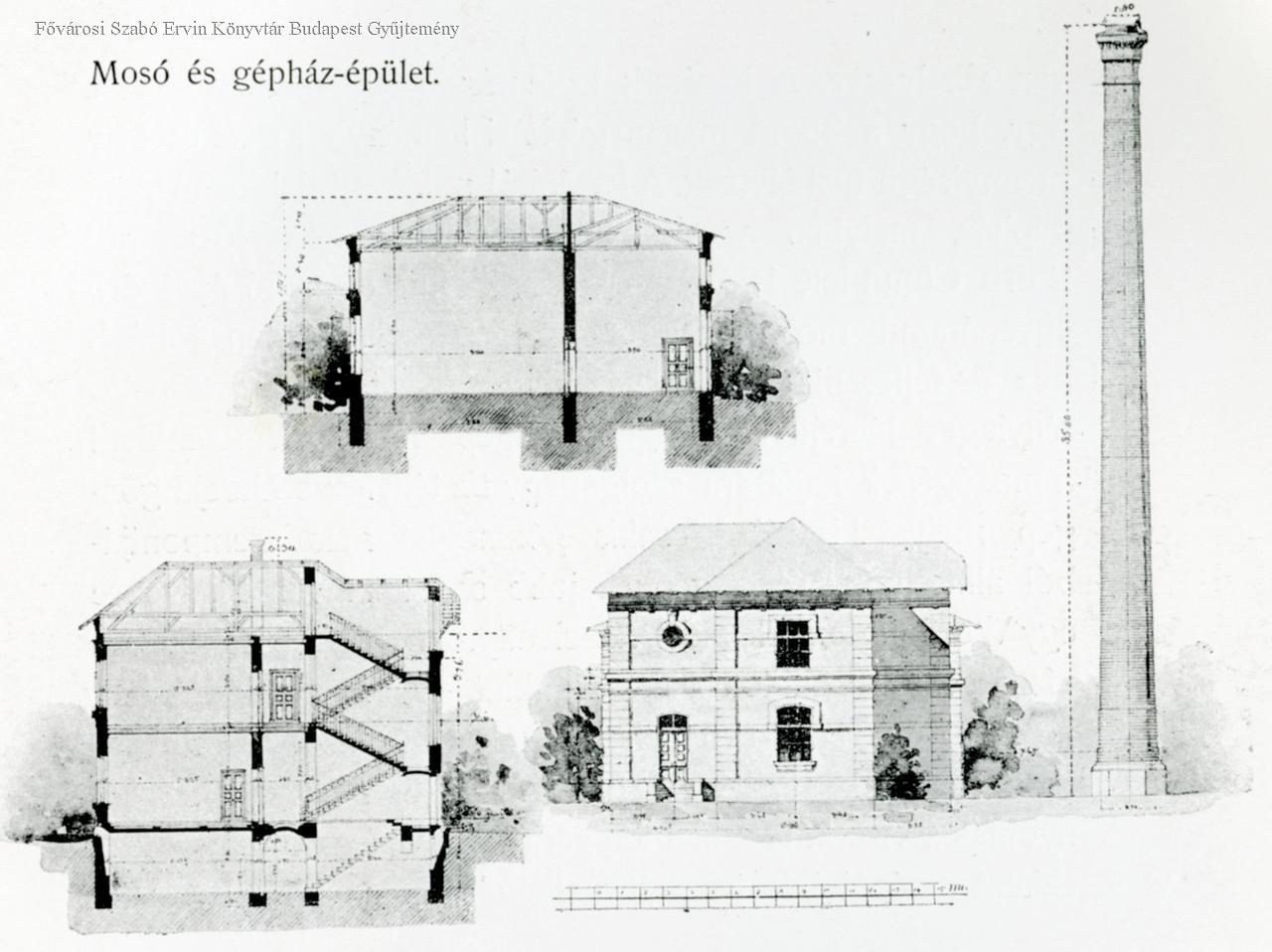 kórház, mosoda, homlokzat, építészeti tervrajz, 1902