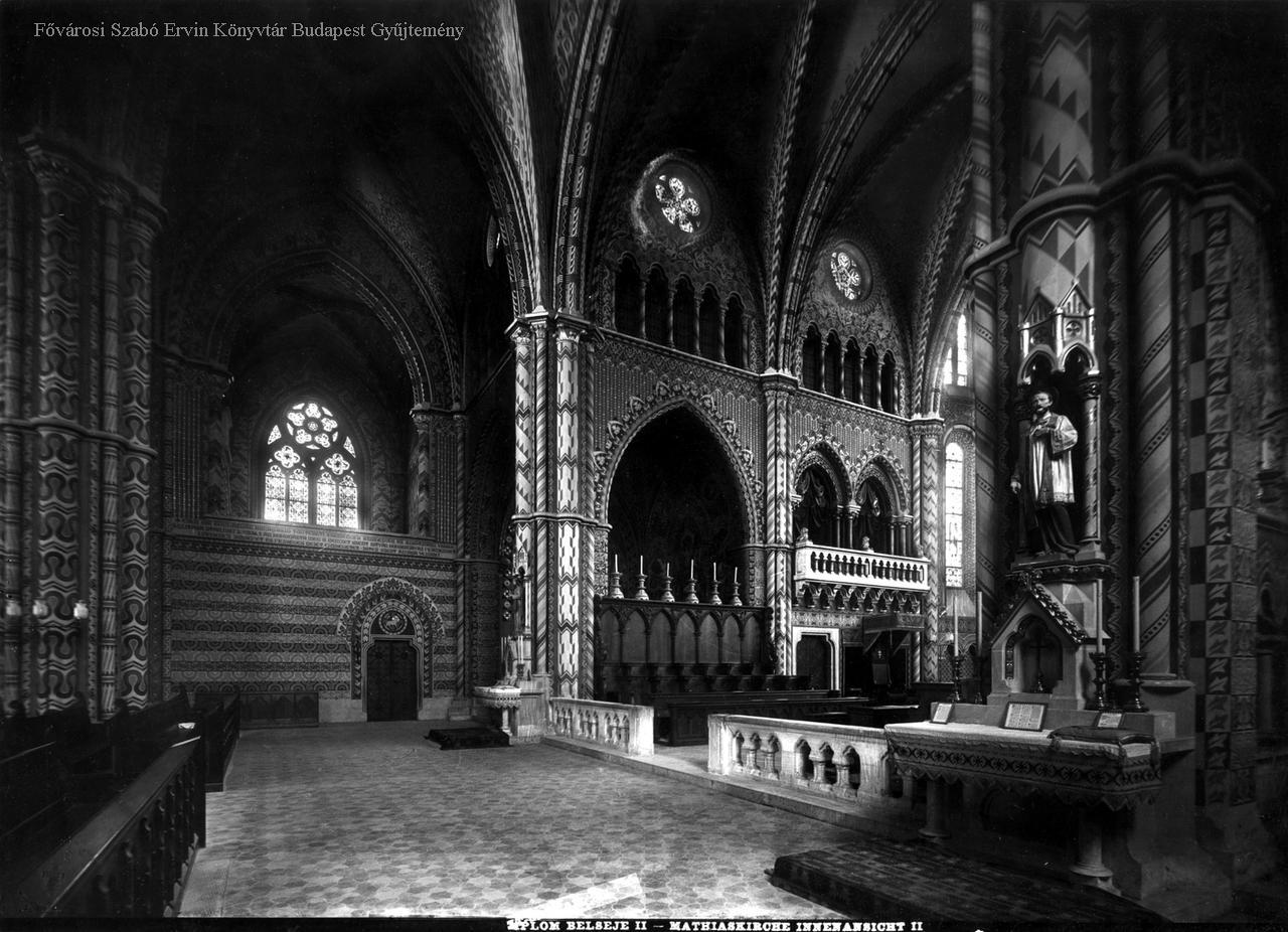 [Mátyás templom főhajója a szentély részletével és a királyi karzattal] templom belseje = II. Matthiaskirche. Innenansicht II. /