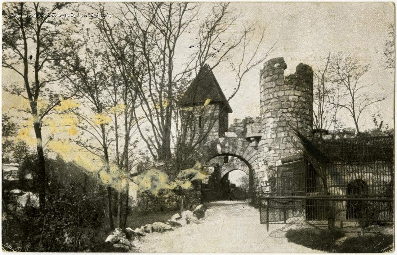 állatkert, vár, kapu, romos építmény, képes levelezőlap, 1913