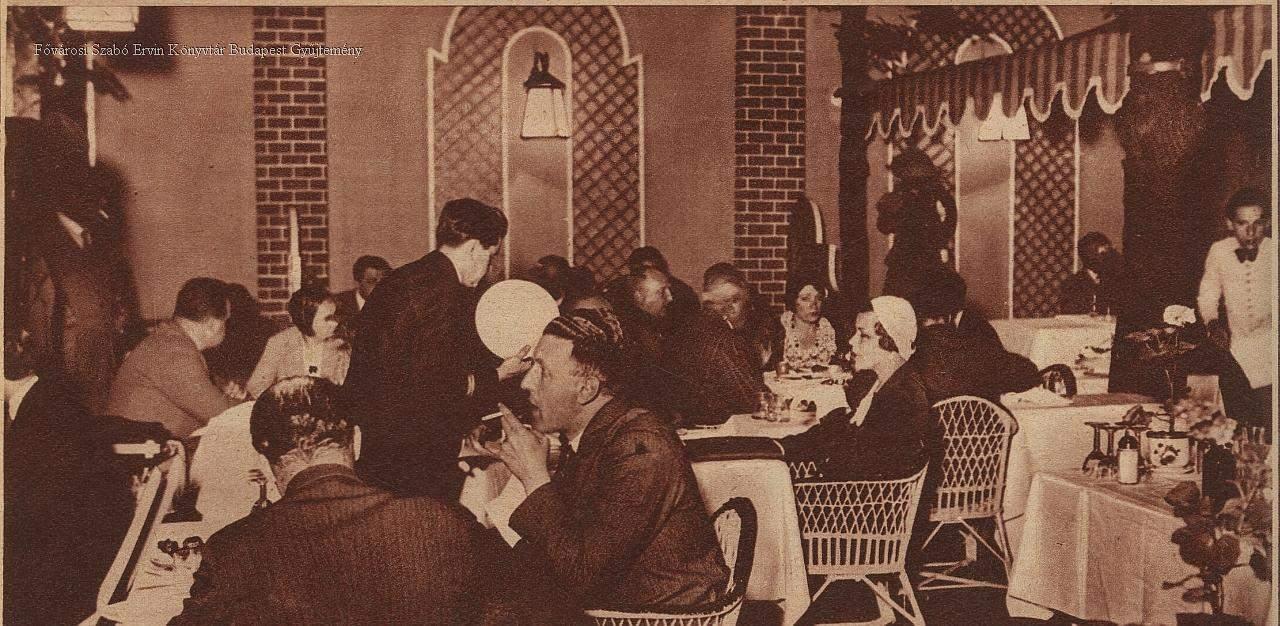 étterem, terasz, zenekar, cigányzenekar, szalonzenekar, kert, este, belső felvétel, sajtófotó, jelenetkép, 1931