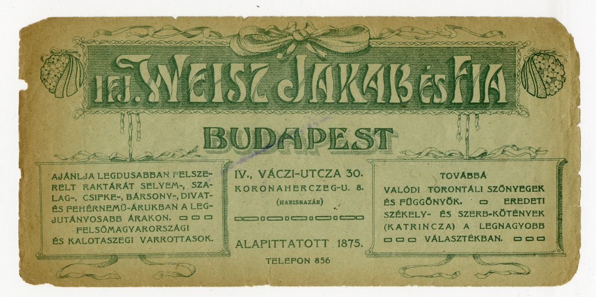 Cégnév:Ifj. Weisz Jakab és Fia