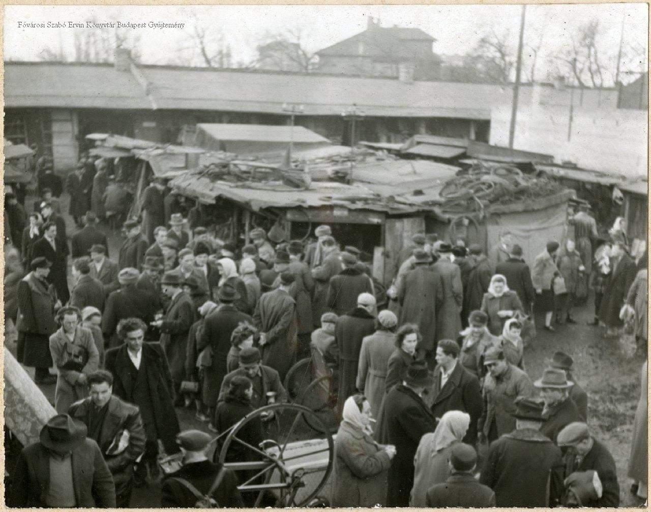 jelenetkép, néptömeg, ember, használt cikk, vásárlás, piac, 1950-es évek